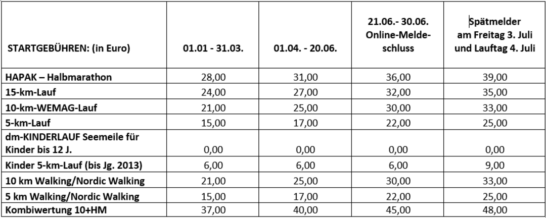 Nachmelder am 03.07.2026 und Super-Spätmelder am 04.07.2026: (bei der Startnummern-Ausgabe)